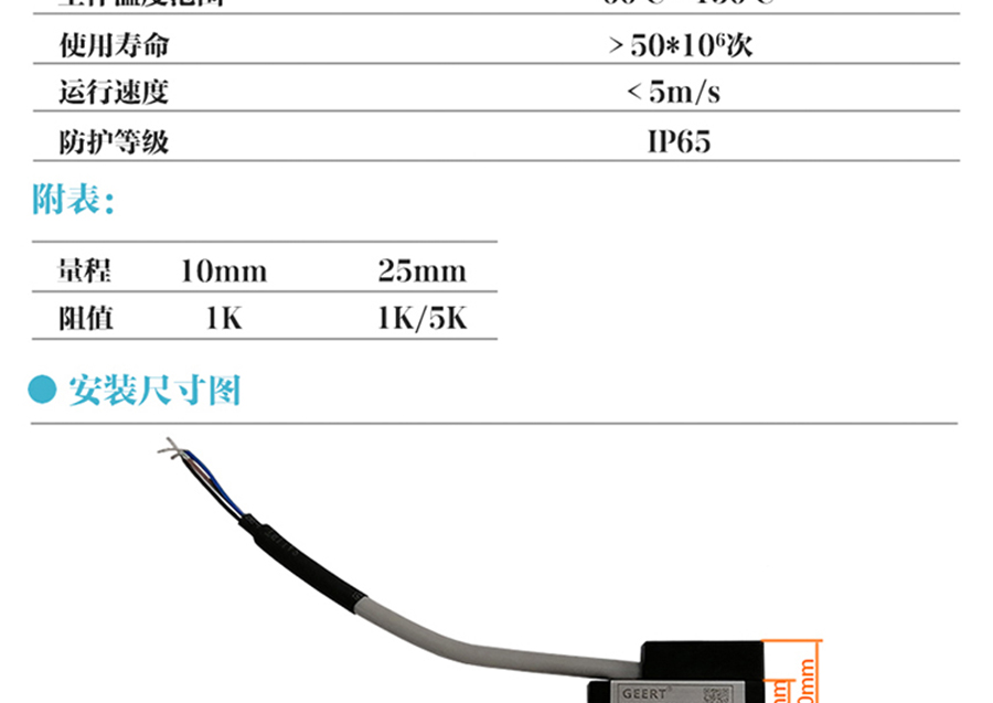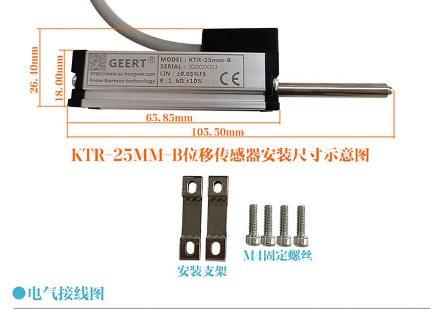 KTR-B型內(nèi)置彈簧直線位移傳感器